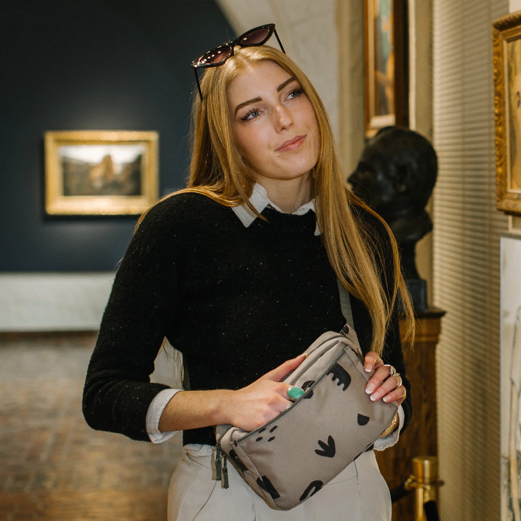 The Roo features our unique magnet closure on three front pockets. This allows quick, one-handed access to reach your essentials. The catch feature keeps your things safe if the backpack were to tip or fall.