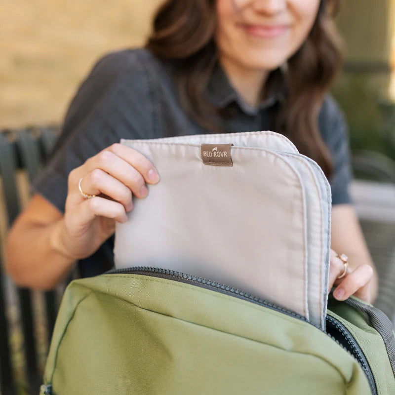 Comes with 14 in x 22 in changing pad for on-the-go diaper changes.